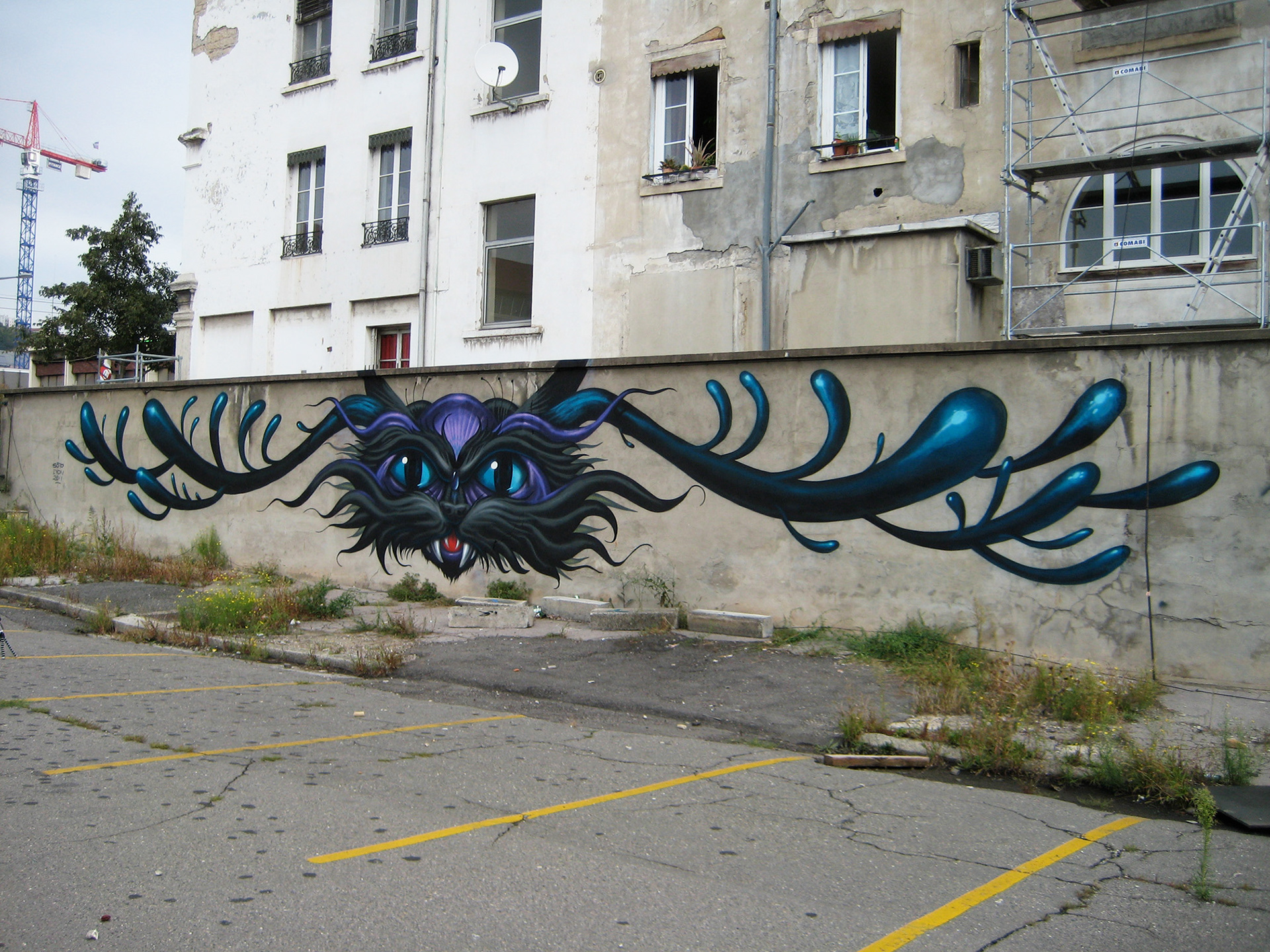 Inspired by a friendly local cat, Soto created his mural "Le Chat Terrible" on the wall of an abandoned post office in Lyon, France.